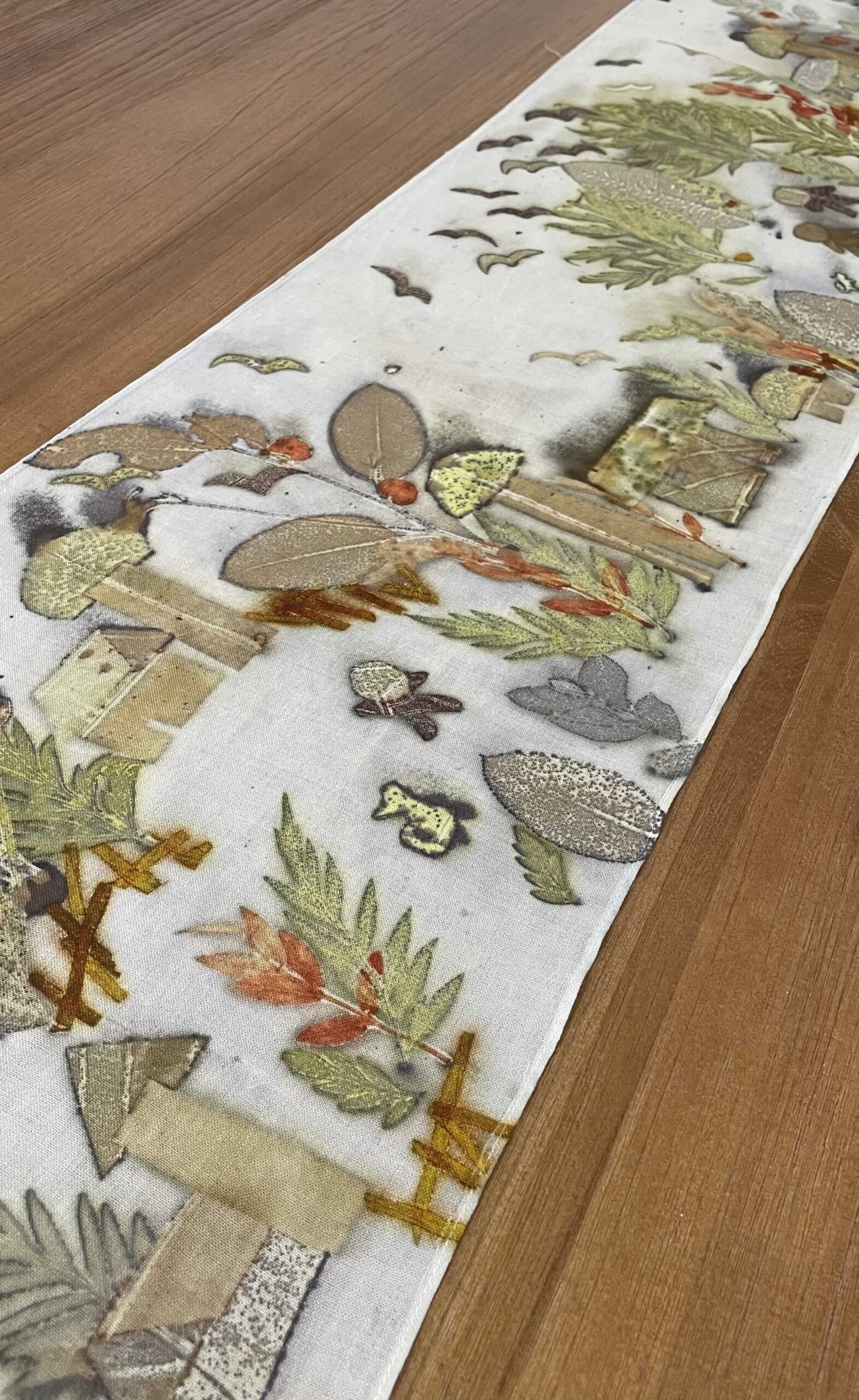 • 工藝特色:以植物本身的形狀、葉脈與天然色素轉印於羊毛布面,呈現自然生成的紋理與層次變化,加上故事性的創意設計來豐富畫面,每件作品皆擁有獨一無二的樣貌。